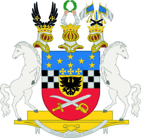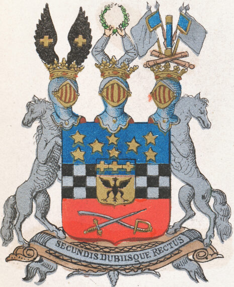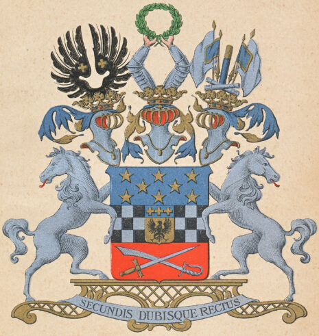 Valspråk: Secundis dubiisque rectus »Rakryggad i med- som motgång«.