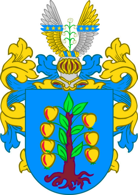 ”… Ett Äpleträ medh Tre grenar, och tre äplen på den ena och fyra grenar sampt fyra äplen på den andra sijdhan, medh sin fulkomlighe färga Vtj ett blått fiäll, åfwan på fiället een öpen Hielm, der opå een grön äple green medh siu Blommor emillan twänne wingar ståendes, tree guule Stiernor mitt på hwarie winga vtj ett blått fiäll, den ena öfre delen på den högre wingan gåhl och den andra delen Silfuerfärgat, den öfre delen på den wänstre wingan sölfuerfergat och den nedre dehlen gåhl, aldeles som be:te Wapn här medh sine fulkomlige färgor afmålat står,…”