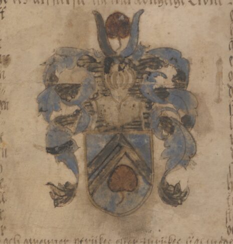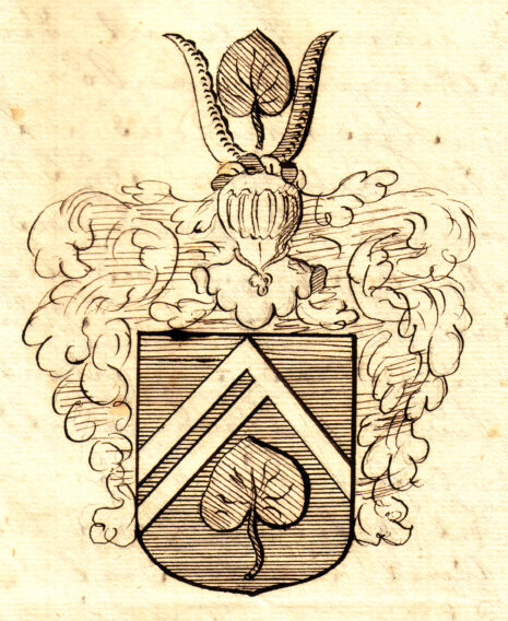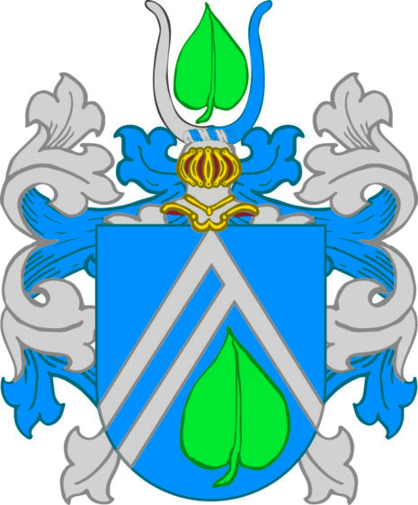 ”… halfannen försölferdh sparre och ett gröndt siöbladh ther unnder udi Blåth fjell, medh en öpen Tornerehielm, på hielmen Tu Oxe horn thet ene på högre siden försölfertt thett andre på wenstre siden blåth och theremellem ett gröndt siöbladh, Krantzenn och hielmetekiet blått och hvidt som thett herudi står afmålet.”
