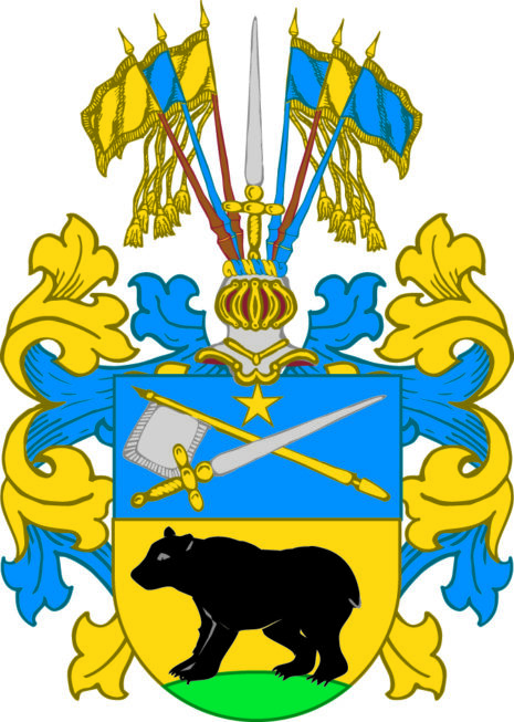 ”… En gåhl skiölldh medh en Biörn utj, s..andes på et gröndt bärgh, öfwan på skiöllden en öpen Törnehiälm, krantzen och hielmtäcket gåhlt och blådt, och öfwan på hiällmen een Eek; Alldeles såβom det medh sine egentlige ferger her repræsenterat och affmåhlat står; …”
