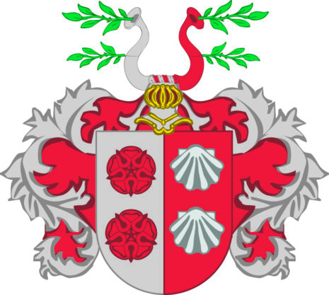 ”… Eeen Sköldh fördeelt medh tu fiäll, dedh högre fiället försölfrat, vtj huilket ståå twå röda rosor, the wänstre fiellet är rödt, ther vtj äre twå försilfrade mutzlor. Åfwan på Skölden een öppen tornerehielm, Crantzen, Hielmtäcket och Löfwärket medh rött och hwitt fördeelte: Åfwan opå hielmen twenne Båffelhorn, dedh högre försilfrad och thet wänstre rött, hafwandes huarthera horn twenne gröna Rosenquistar på sigh twenne emot sigh ståendes, aldeles som sielfwe afmålade wapnet med sine egentelige färgor här repræsenterat och afmålat ståår.”