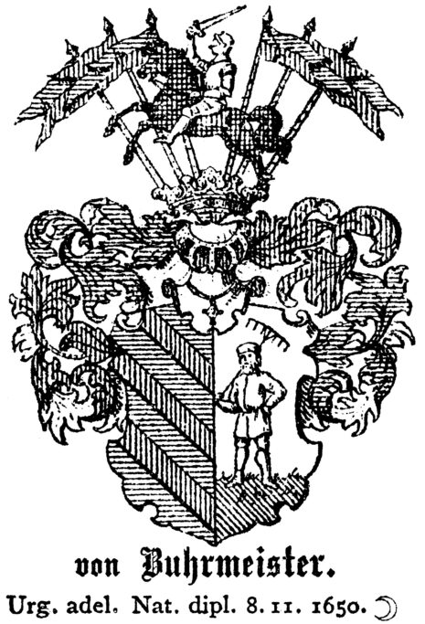 ”En fördelt sköld, högra sidan blÃ¥, deruti 3 röda bander, venstra sidan hvit, deri en stÃ¥ende bonde pÃ¥ en Ã¥ker, med en härf pÃ¥ axeln. OfvanpÃ¥ skölden en öppen tornerhjelm, täcket och kransen med blÃ¥tt, rödt och hvitt fördelta; pÃ¥ hjelmen en förgyld krona, hafvande öfver beväpnad ryttare till häst mellan tre fanor pÃ¥ hvardera sidan.”