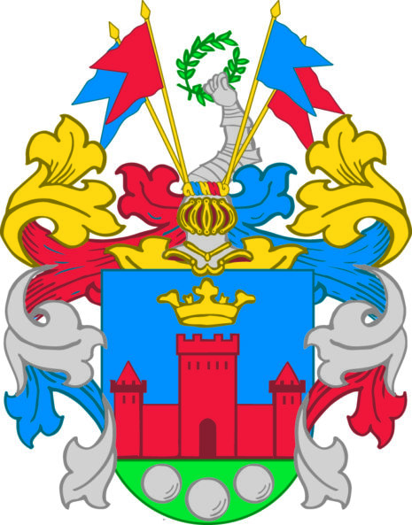 ”… een Blå Sköldh, derj finnes Een Chrona öfuer een Bårgh af rödh färga, stående på ett grönt felt, huarest och äre liggande tree Kuhlor; Ofuan opå Skölden een öpen Tornerehielm, Täcket och Crantzen medh blådt, rödt och guhlt fördeelte; Ofuan opå Hielmen Een bewäpnadt opräckt arm, hollandes j handen een Lagerbär Crantz emellan fyra fahnor; aldeles som det medh sine Egendtlige färgor härhoos repræsenterat och afmåhlat står; …”