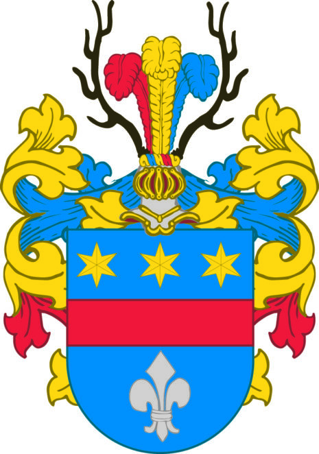 ”… En blå skiöldh, uthi hvilkens nedre deel är en frantzösisch lillia, mitt opå skiölden en rödh biälcke och i öfre delen tree stiärnor af gåhl färga. Ofvan opå skiölden en öppen tornerehielm, täcket och chrantzen medh gullt, rödt och blåt fördelte, därofvan opå stående någre strussfiädrar emellan tu råbockehorn, aldeles som det medh sine egentlige färgor här hoos afmåhlat och representerat står.”