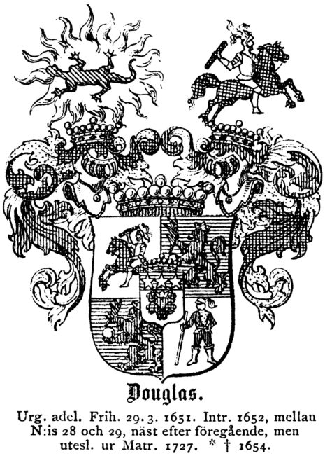 Uradlig ätt som härstammar från Skottland och som är urkundligt belagd från 1174 med William (död ca 1214), på latin skriven de Dufglas, alltså till Douglas i grevskapet Lanarkshire. Ätten utgrenade sig med tiden i ett flertal grenar, bl.a. grenen Dalkeith från vilken den svenska ätten härstammar.