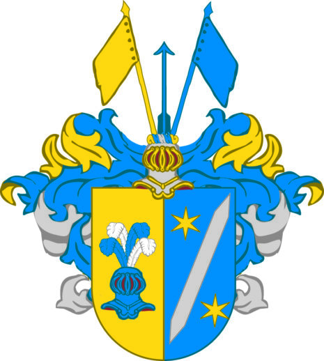 ”… Een Skiöldh fördehlt i längden uthi twänne lijka dehlar, dhet högre fälltet ähr af Gull, hwaruthi ståår en öppen Tornerehielm af blå färg med blå och hwijta Plumager uthzijrat, dhet wänstre fältet ähr blådt uthi hwilket wijsar sig en uddig Bielke af Sölfwer emillan tränne Stiernor af Gull ofwan på Skiölden ähr en öppen Tornerehielm, hwaruthur upstiger en blå Sckächta emillan twänne Estandarer af hwilka den högre är af Gull och dhen wänstra blå, Crantzen och Löfwärket är af Gull, blått och Sölfwer hwart om annat bemängt, alldeles som sielfwa Wapnet med sine rätte och egentelige färgor här hoos repræsenterat och afmåhlat står; …”