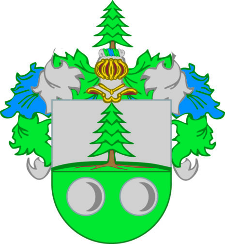 ”… Skiölden fördelt, den öfra delen hwit, der uti ett granträ; den andra dehlen grön, der uti Twenne Stycke Kulor; ofwan uppå Skiölden en öpen Tornerhielm, Täcket och Crantzen med hwit, grönt och Blått, fördelte, ofwan uppå hiälmen, ett granträ, aldeles som thet med sine rätte färgor här hoos afmåhlat finnes; …”