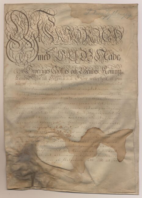 Friherrebrevet i original, RHA.