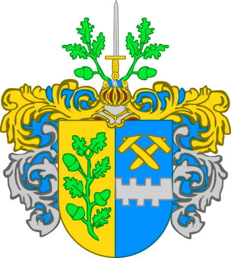 ”… en uti lengden twenne lijka dehlar fördehlt skiöld hwars högra felt är af Gull och deruti et grönt Eketra med femb blad och twenne Ã…llon, det wänstra feltet är blÃ¥tt hwaruti ligger en Uddig bielcke af Sölfwer och ofwer densamma et par KÃ¥rswijs stälte hambrar af Gull, ofwan pÃ¥ Skiölden är en oppen Törnörhielm hwaröfwer wijsar sig ett bart swärd emellan twenne Gröne Ekequistar, Crantzen och Löfwercket af Gull blÃ¥tt och Silfwer hwartom annat mängt och fördehlt aldeles som som sielfwa wapnet med sine egentl fergor hos representerat och afmÃ¥hlat stÃ¥r. …”