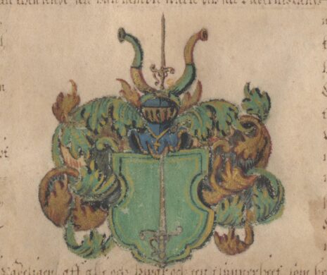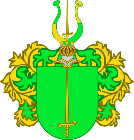 ”… Ett grönt Field, der uthi ett bahrt förgylt Swerd, och der åfwan opå een öpen Hielm och på Hielmen ett förgylt Swärd emellan twenne Jägerhorn, effter som det här affmålat står; …”