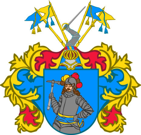 ”… Een blÃ¥ skiöldh, dheruthinnan stÃ¥r enn half, i försilfveradt harnisk beväpnad man, vändandes sigh Ã¥th högre sijdan, hafvandes i cascheten röde, fiolebrune och gule fiädrar, en försilfvereradt strijdzhammar hollandes i högre handen, kring om sigh ett blÃ¥tt escarp medh guldfrantzar och een väria vidh sijdan medh förgyldt fäste. Ofvan oppÃ¥ skiölden een yppen tornerehielm, dheruthur oppstiger emellan fyra estandarer af blÃ¥ och gule färgor en beväpnad arm medh een baar väria. Löfvärcket af guul, blÃ¥ och rödh färga sammanblandade, alldeles som sielfva vapnet medh sine egentelige färgor här hoos stÃ¥hr mohlat och afsatt.”
