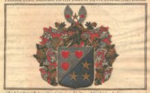 ”… En Skiöld taillé eller genom ett barre wijs stält strek fördelt i twenne delar, warandes det öfre fältet, af silfwer, hwaruti synes tränne röda hiertan, det nedre fältet är blått med tre lysande stiernor uti af gull. Ofwan på Skiölden står en öppen Tornerhielm, öfwer hwilcken är en stierna af gull emellan twenne försilfrade utslagne wingar, hwardera med ett rött hierta Zirade, Crantzen och Löfwärcket är af gull, silfwer, blått och rödt, aldeles som detta Wapen med des rätta färgor här brede wid afmåhlat finnes.”