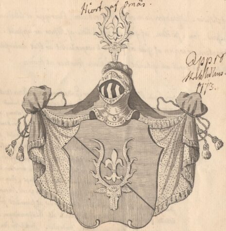 Hans Gustaf erhöll även en vapenritning approberad 1773 30/4 på Stockholms slott av konung Gustav III. Av denna framgår att ätten först var tänkt att heta Lillienhiort, men att detta ändrades av Gustav III till Hiort af Ornäs.