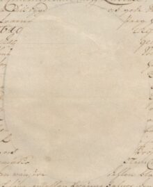 …een Ändelängst i twenne dehler fördehlt Skiöldh den högre dehlen Guhl hwaruthj står een swart Grijp, hållandet i des högre foot een bahr wärja, den wänstre dehlen blå och der uthj een half Crantz af Ekelöf medh femb Ollon der på af Guhl färg ofwan på Skiölden een öppen Tornerehielm och deröfwer een half Grijp af swart färg, emellen twänne Fahnor, den högre Guhl och den wänstre blå, men Crantzen och Löfwerket af Guhlt, blått och swart medh hwart annat bemängdt, aldheles som sielfwe Wapnet medh sine egentelige färgor her hoos repra’senterat och afmåhlat står,…..
