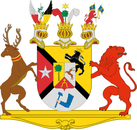 ”… En med swart S:t Antonii-Kors bande wis styckad Swensk Sköld, som midt uppå är belagd med en Fransk Hjerte Sköld, och innehåller det i följande måtto förbättrade Stam-Wapnet, neml:n Skölden klufwen intil Hjertat af guld och silfwer, och sedan Mantel skuren af rödt. I den högra delen nemligen af guld, förekommer en grön växande Ek, och i den wänstra delen af silfwer, en uti högt språng löpande Hjort af naturlig färga, och i den nedra röda Mantel-spitsen en upwänd Spåre af guld. Men af Friherre Wapnet förekommer det första fältet af guld, som intager hela rummet ifrån öfra högra, til nedra wänstra hörnet, och föreställer ett uprest emot höger gångande swart krönt Lejion, det andra fältet emot höger rödt, wisar en femuddig Stjerna af silfwer, och det tredje understa Fältet är af nyssnämde Metall, hwaruti föreställes en emot höger wänd bewäpnad blå Arm, som barrewis håller en Hammare af samma färg. Ofwanpå Skölden stå Trenne med Grefweliga Kronor betäckte och med gyllene böglar försedde Tornere-Hjelmar. Utur den medlersta Hjelmkronan upwäxer emellan tvenne Strutsfjädrar, den til höger röd och den andra till wänster af silfwer, en grönskande Ek, uppå hwars öfwersta topp ses en Molette af guld; På den högra Hjelmkronan står uprest ett bart tvåhändigt Swärd, Fästet af guld och Klingan af silfwer, omwefwadt med en grönskande Lagergren, emellan twänne fördelade wingar, den til höger af silfwer och rödt samt den andra til wänster af swart och guld. Ifrån den wänstra Hjelmkronan upstiger ett halft til wänster wändt rödt Lejion, som i högra framfoten förer twänne korswis stälda blå Fanor, den högra märkt med Wår Högstsalige Herr Faders Konung Gustaf III:djes, och den wänstra med Wårt Eget Namns Chiffre, båda af guld. Sköldhållare äro, til höger en Hjort af naturlig Färg, zirad med ett rödt guldkantadt Halsband och til wänster ett rödt Lejion. Begge med utwände hufwuden, aldeles som detta Wapen med sine rätta Färgor här afmåladt finnes.”
