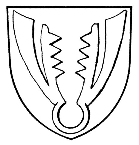Släktens svÃ¥rtolkade vapenbild har traditionellt efter Rasmus Ludvigsson oftast ansetts föreställa gäddkäkar men har av Raneke uppfattats som ”nosklämmeskänklar”, ehuru han ej kunnat belägga existensen av dylika under medeltiden. I de äldre generationerna var de tvÃ¥ men under 1500-talet tre i trepass. Enligt Rasmus Ludvigsson voro dessa figurer vita i blÃ¥tt fält, men kyrkmÃ¥lningar visar andra tinkturer.