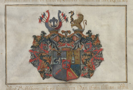 ”… En Skiöld fördelt i Fyra Fält, och mit uppå fördelningen är des gambla Adelige Stam Wapen, som är en Lillia af Silfwer i Rödt Fält; Men af Sielfwa Friherrlige Wapnet är det Första Fältet Blått, hwaruti ligger en Fästning af Silfwer på en Elf, och deråfwanföre sees twenne korswijs lagde förgylte Stycken. Uti det Andra Fältet som är af Gull, står en blå Piramide, emellan sex röda kulor, warandes Piramiden trädder igenom en Friherrlig krona, det Tredie Fältet är af Silfwer, med trenne barrewijs stälte röda hiertan uti, genom stungne med en pijl, det Fierde Fältet är genom en smahl Gull bande fördelt i twenne delar, warandes den öfre delen blå, med en försilfrad Lillieconvallie stiälke uti, bestående af siu stycken blommor, och uti den andre delen som är röd sees ett bandewijs stält Ekeblad af Gull. Ofwan på Skiölden stå Twenne öpne Tornerhielmar, med en Friherrlig Krona emellan och en på hwardera hielmen, uppå den högre hielmkronan står en lillia af Silfwer emellan ett rödt och ett försilfrat Buffelhorn, och på hwardera sidan ifrån lillian, utskiuta sig utom hornen fyra Fenickor, med rödt och Silfwer hwar om annan fördelte. Utur den wänstre hielmkronan upstiger öfre delen af ett gyllende Leijon, hållandes med bägge ramarne en kafle af Gull, som är öfwerst klufwen, om hwilken slingrar sig en swart Orm. Löfwärcket är af Gull, Silfwer, Blått och Rödt. Aldeles som detta Wapen med deβ egentelige färgor på emotstående sida afmålat står.”