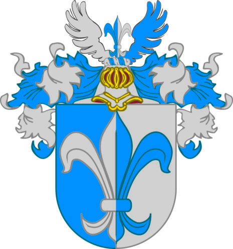 ”… Een fördeelt Sköldh, högre deelen blå och wänstre deelen hwijt, der Vthj een Lillia, hwilkens högre deelen är hwijt och wänstre deelen blå, Ofwan på Skölden een Öpen Tornerehiälm. Crantzen och hiälmen täcket, sampt Lööfwärckedt medh blått och hwijtt fördeelte. På hiälmen een Lillia, half blå och half hwijt, emellan twenne medh samma färgor fördeelte Örnewingar, aldeeles som siälfue wapnedt här mit oppå, medh sine egendtlige färgor afmålat Står; …”