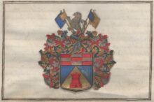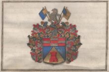 ”… En Skiöld genom twänne spitzigt upföre sammangående Linier fördehlt i trenne dehlar; det medlersta Fältet är af Gull, hwaruti står ett rödt Torn, de bägge yttre äro blå frije Fält; Öfwerst i Skiölden är en Chef, som består af Nijo långlige i twären lagde Scack-rutor, med rödt och silfwer hwar om annan fördehlte. Ofwan på Skiölden står en öppen Tornerhielm, hwarutur upstijger öfre dehlen af ett försilfrat Leijon emellan twenne Estandarer innerst, och så månge Fahnor ytterst stälte, hwar om annan med blått och gull skifftade. Crantzen och Löfwärcket är af Gull, Silfwer, Blått och Rödt, aldeles som detta Wapnet med dess rätta och egentelige färgor här hoos utsatt och afmåhlat finnes.”