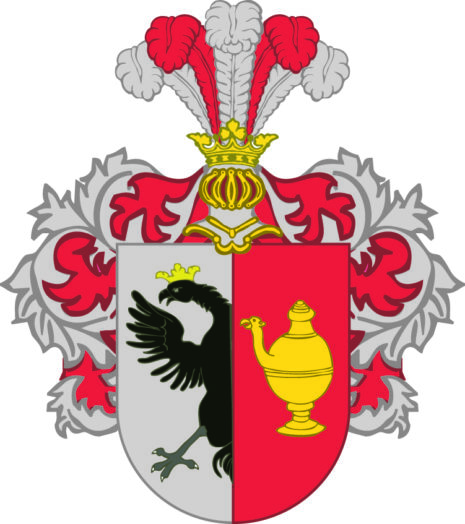 ”… En skiöld fördelt ände långz uthi twänne delar, uthi högre dehlen på itt hwidt fält, står en half örn medh sin naturlige färga och förgylt Chrona på hufwudet, men uthi dhen wänstre deelen på et rödt felt itt förgylt kruus, ofwan på Skiölden en öpen Tornerhielm, och dher öfwer en förgylt Chrona, hwar uthur uppstijga femb Strutzfiädrar, dhen medelste och både the ytterste af Sölfwer, och dhe andre både röda, Krantzen och kringhängiande Löfwärk aff rödt och Sölfwer, hwart om annat inmängdt och beblandat, aldeles som sielfwe Wapnet medh sine egentelige färgor och prydnat här hoos afmåhlat står.”