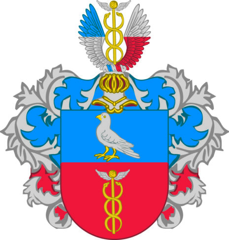 ”… een fördelt Sköld i twenne delar, i then nedre een rhätt upstående Mercurij Staaf i rödt fält, men i then öfre delen en hwijt dufwa i blått felt, ofwan på Skölden een öpen tornerhielm, Kransen och löfvärket medh hwitt, blått och rödt på både sidor hwart om annat Zirat, och öfwer hielmen een upstående Marcurij Staaf mellan twänne wingar, half röde och half hwijte, aldeles på sätt och wijs, som thet medh sine rätte och egentelige färgor her hoos uhtsatt och afmåhlat finnes; …”