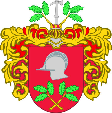 ”… till Skölld och Sköldemärke, Twå förgylltte Eekequister j Kors midh Trij gröön Lööf hwardere, ther offuenföre eenn för Söllffrfredt StormHuffwa uthj eett rötth Fiäldh, Ittem eenn öpen TornereHielm, Krantzsenn och Hielmtäckett rött och gåltt, ther offuen opå Eenn förSölffredt Strijdzhammer, emellenn Twå EekeQuister.”