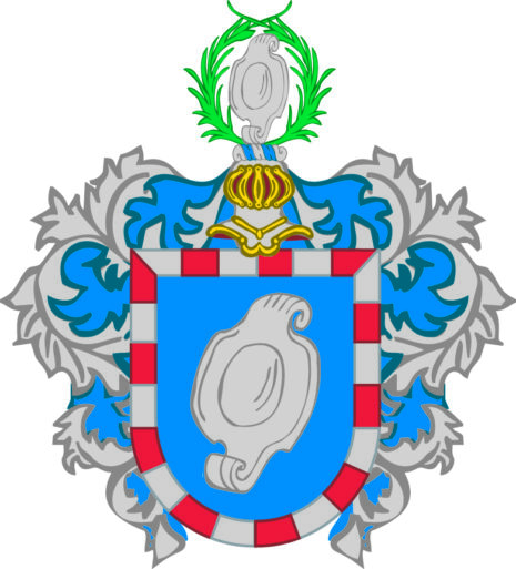 ”… en Skiöld med blått feldt, hwaromkring en bord eller rand af Solfwer och rödt fördeelt, Vthi sielfwa feldtet en Skiöld aff Sölfwer, Ofwanpå Skiölden en öpen Tornerehielm hwaröfwer iemwähl en försölfrad skiöld uti en Crantz af twenne gröna sammenbögde Palmquistar; Krantzen och Löfwärcket aff Sölfwer och blådt under hwart annat fördeelt, aldeles som sielfwa Wapnet här bredewijd afmåhlat finnes.”