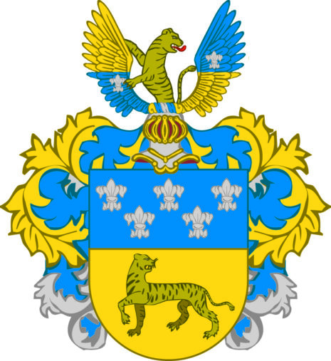 ”… Skiölden fördeelt på Twären utj twenne lijka dehlar, det öfre Fältet är blått, hwarutj stå Femb Lillior af Silfwer, det nedre Fältet ähr af Gull, utj hwilket wijsar sig een tillbaka seende Tijger af Naturlig Färg; Ofwan på Skiölden står een öppen Tornerhielm, hwar uthur opstijger Öfredeelen af een Tijger medh samma färg och skick, som i sielfwa Skiölden, emellan Twenne Wingar, hwilkas Högre öfre och Wänstre nederdehlar äre af Gull och dee begge öfrige blåå, medh een hwijt Lillia uthj begge blå dehlarne. Crantzen och Löfwärket är af Gull, blått och Silfwer, aldeles som detta Wapnet medh sine rätte och egentelige Färgor häär hoos repræsenterat och afmåhlat ståår.”
