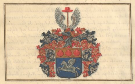 ”. . . En Skiöld af blå Färg, hwaruti sees en Pegasus af Silfwer. Öfwerst i Skiölden är en Chef af Guld, som är Zirad med tre röda Musslor. Ofwan på Skiölden står en öpen Torner-Hielm, öfwer hwilken sees en röd Frihetz-Hatt uppå en förgylter Lantz, emellan twänne utslagna försilfrade Wingar. Krantzen och Löfwerket är af Guld, Silfwer, blått och rödt, aldeles som detta Wapn med sina egenteliga Färgor här hoos finnes afmålat.”