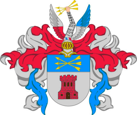”… En Skiöld af Silfwer, hwaruti wijsar sig ett rödt Torn samt en blå Chef och där uti Trenne korszwijs lagde Pijlar af Gull, wändandes spitzarna åt höger: Ofwan på Skiölden står en öppen Tornerhielm, hwaröfwer sträcker sig en arm hållandes trenne Pijlar af Gull i handen, emellan ett par wingar med Silfwer, rödt och blått hwar om annan i twäran fördehlte. Krantzen och Löfwärcket är af Silfwer, Blått och Rödt, aldeles som detta Wapnet med des rätta färgor här afmålat finnes.”
