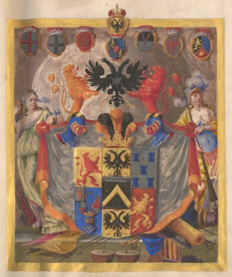 ”… En Skiöld fördelt i fyra Fält, och mitt utj den samma desz Adelige Stam-Wapn, som är en Sparre af Gull i swart Fält; men af sielfwa Frij-Herrlige Wapnet är det Första Fältet blått, hwaruti står ett Torn af Gull. Det Andra Fältet är fördelt i twäran, inne hållandes den nedre delen allenast en trediedehl af Fältet, med trenne rader af hwita och röda fyrkanter hwar om annan fördelte, hwilka till tahlet äro Otta i Hwardera raden, och deröfwer wijsar sig en swart fläckt Örn, med en Silfwer Stierna på Bröstet i Gull Fält. Det tredie Fältet är öfwer alt lijkt med det andra, så och det fierde med det första. Åfwan på Skiölden står twenne öpne tornerhielmar, med en FrijHerrlig Crona emellan, sampt en öfwer hwardera Hielmen; utur den högra Hielm Cronan upstijga fem plumager, af hwilka den medelste och begge ytterste äre af Gull, och dhe trenne öfrige Swarta; Öfwer den wänstra Hielm Cronan står ett gyllene Leijon: Löfwärket är af Gull, Sölfwer, blått och rödt, aldeles som detta här hoos stående Wapn med desz rätta och egentelige Färgor afmålat utwijsar: …”