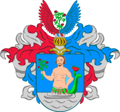 ”… en blåå Sköldh, där uthi en Merman fattande med handen en Rosenqwist, Åfwan oppå Skölden en öppen tornerhiälm, täckedh och Krantzen med hwitt, blått och rött fördeelte; Åfwan oppå hiälmen en Rosenqwist emillan twenne wingar, then ena rödh och then andra blåå, aldeles som thedh medh sine rätte färgor här repræsenteradt och afmålat finnes; …”
