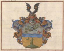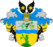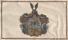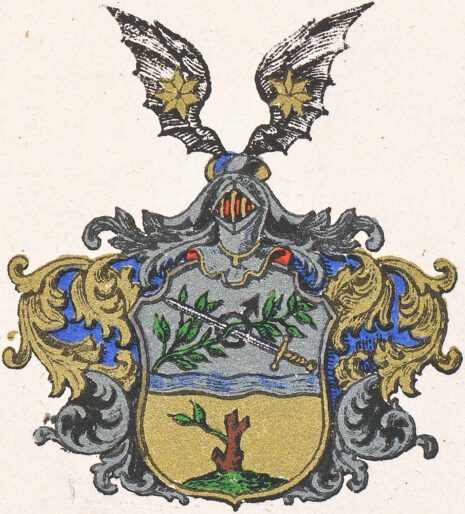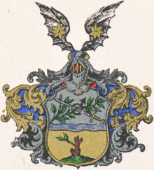 ”… En på Twäran och med en blå flytande Ström mitt i Tu fördelter Skjöld. I den öfra delen, som är af Silfwer, ses en bar wärja och en grön Lager Qwist, Korszwis lagde, och med ett swart Signo Martis sammanbundne. I den andra delen, som är af Guld, ses en med Tre afhuggne Grenar, och på sin marck stående grön Träd Stam, Hwarutur till Höger utspirar en ny Telning med Twenne grönskande Blad, hwilcken Stam tillika med Strömmen betecknar den Förwantskap som ofwannämde Stockenströmar haft med den nu mera Utgångna Adeliga Ätten Stockenström. Utur den öppna Tornere Hjelmen som är med gula och Swarta Plumager Zirad upstiga Twenne swarta utsträckte Draka Wingar, hwilcka Hwardera äro belagde med en Chymisk eller SjuUddad Stjerna af Guld. Krantsen är blandad med Guld, Silfwer, Swart och Blått och Löfwärcket är i grunden, men i Dagen af Guld, Silfwer och Swart. Aldeles som det samma här frammanföre med sina rätta Färgor afmålat finnes.”