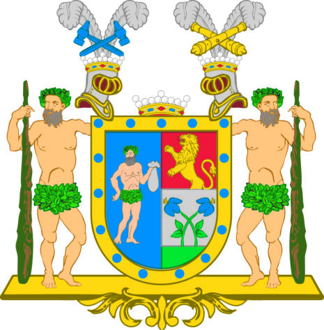 ”… En Sköld, omgifven af en gyllene kant eller Ram, som är rundt omkring belagd med femton blå kulor, tre på den öfra, fyra på den nedra sidan och fyra på hvardera af de andre tvänne sidorne, alla på lika afstånd ifrån hvarandra. Skölden är på längden klufven i tvänne lika delar: af de deraf upkomne Fält är det högra blått, deruti synes en uprätt stående Wildman af naturlig färg, med hufvudet åt höger vändt och omlindadt med en grönskande krans; hakan beväxt med ett gråaktigt Skägg. Medjan är omgjordad med en lika krans, som han bär om hufvudet, och i den venstra uphöjda handen håller han en vid öppningen sammanhållen liten Säck af hvit färg. Det venstra fältet är på tvären åter fördeldt uti tvänne fält, af hvilka det öfra är rödt. Deruti upreser sig ett åt höger vändt gyllene Lejon, med utsträckt tunga, uplyftade framfötter och upslängd svans. I det nedra fältet, som är af silfver, synas från en grönskande mark upväxa tvänne blå Liljor med sina spiror och utåt böjda stjelkar, hvardera stjelken på yttre sidan försedd med tvänne gröna blad. Skölden är betäckt med en Friherrlig Krona emellan tvänne framåt vände, med gyllene charner och halskedjor samt Friherrliga kronor prydda öppna Tornerhjelmar. Ifrån hvardera af dessa hjelmar uppstiga 2:ne hvita, utåt veftande, Strussfjädrar, framför hvilka äro stälde, på högra hjelmen, tvänne Hammare af blå färg, i kors öfver hvarandra eller bande- och barrevis, med hamrarne uppåt vände, och på den wenstra, äfven bande- och barre-vis, tvänne förgyllde Metall-canoner, med uppåt vände mynningar. Skölden uppehålles på ömse sidor af en Wildman med grönskande kransar om hufvudena och midjorne, hållandes den till höger i högra handen och den till venster i venstra handen hvardera en nedåt vänd så kallad Herculis klubba. Om sina hakor bära de ett gråaktigt skägg. Altsammans hwilar på en prydlig gyllene Fotställning aldeles såsom Wapnet här ofwan med med sina rätta och egenteliga Färgor afmåladt finnes.”