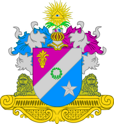 ”… En med en Barre af Silfwer belagd Sköld, i hwars öfra Fält, som är Purpur färgadt wiser sig en Gyllene Vase, och i det nedra, som är blått en femuddig stjerna af Silfwer. Midt på barren ligger en grönskande Eklöfs krans. Den öppna Tornere Hjelmen är betäckt med en af Purpur, Silfwer och blått wriden Hjelmkrans, ofwan hwilken äro i kors lagda twänne grönskande Palmqwistar, hwaröfwer lyser Försynens Sinnebild, eller ett af en Gyllene trekant omfattadt öga, som sprider Gyllene strålar. Wapentäcket eller det så kallade Löfwärket, som till midtlen af Skölden, den samma omgifwer, är utantill af Silfwer, men innantill på högra sidan blått och på den wenstra Purpurfärgadt. Nedra delen af Skölden stödjes af twenne till främre hälften synliga liggande Lejon af naturlig färg på en Gyllene fotställning; Aldeles som det samma här med sina rätta och egenteliga färgor afmåladt finnes.”