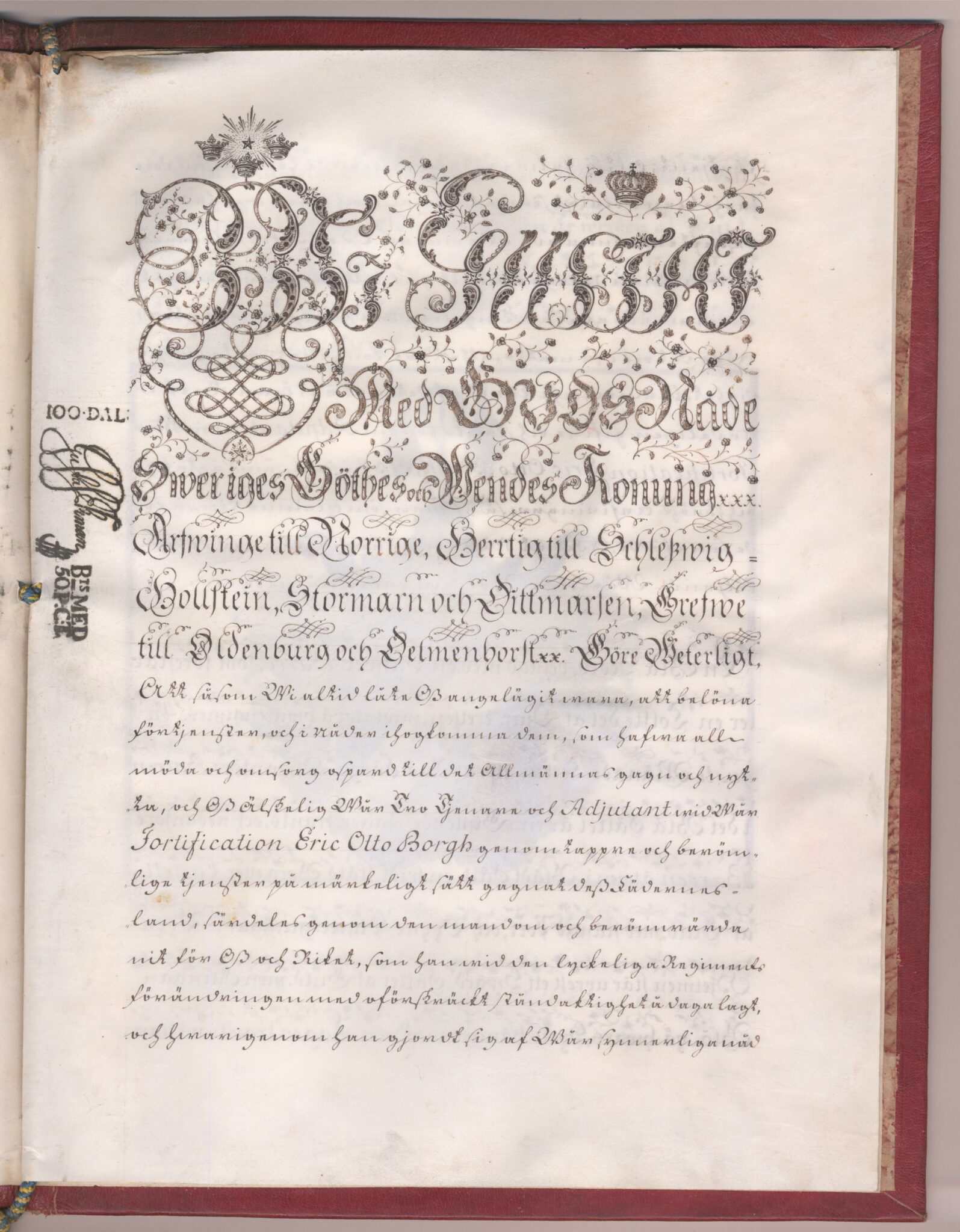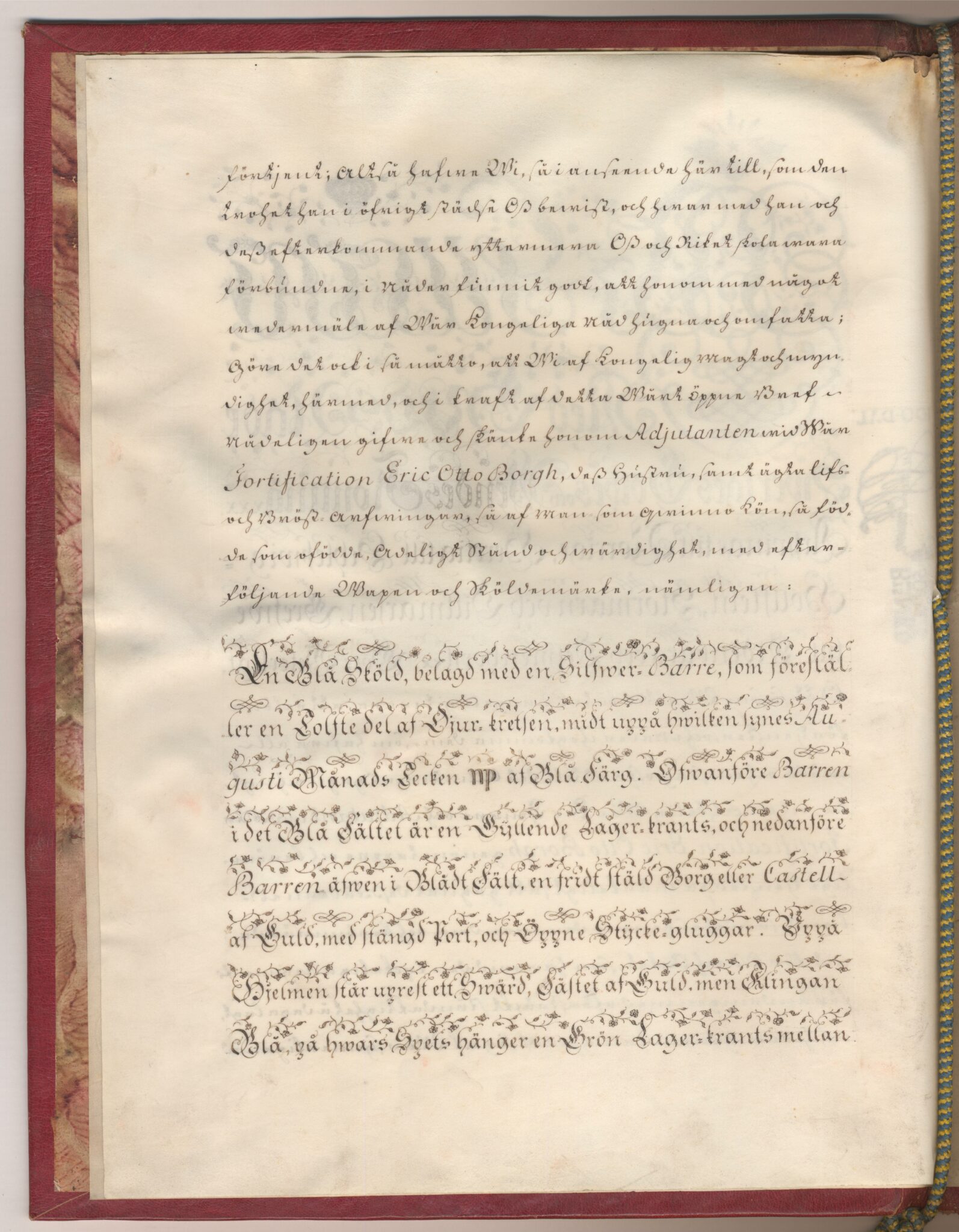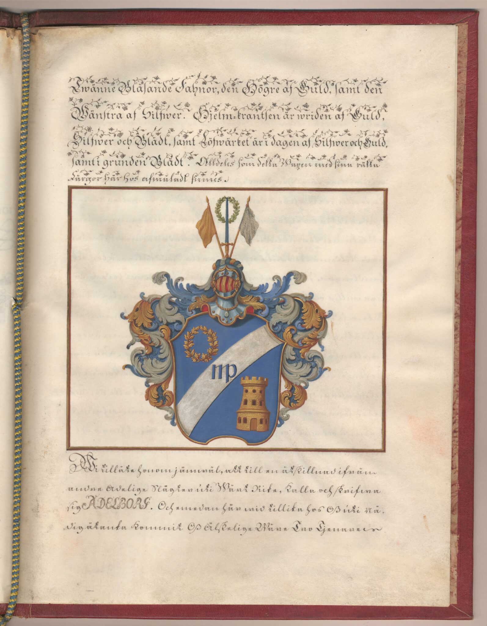 Sköldebrevet i original för adliga ätten Adelborg, nr 2090.