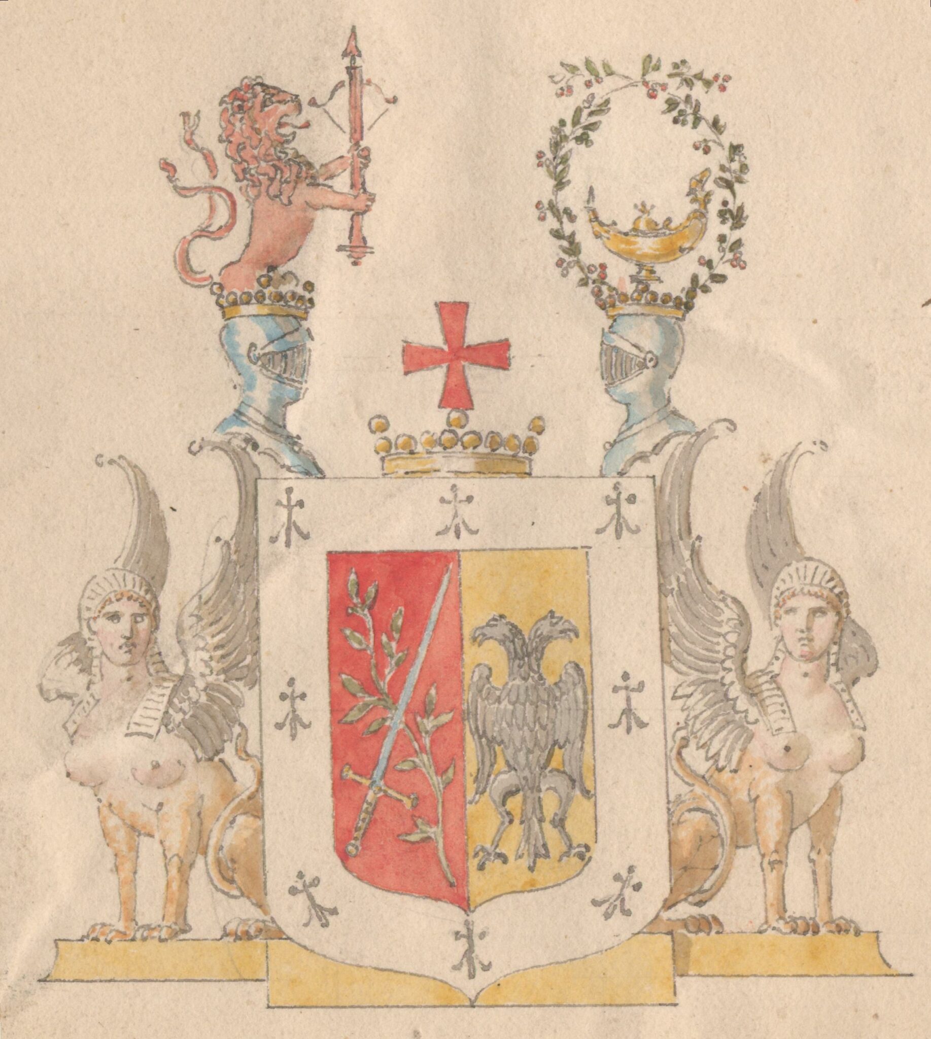 Approberad vapenritning för utdöda friherrliga ätten Adlerbeth, nr 329.