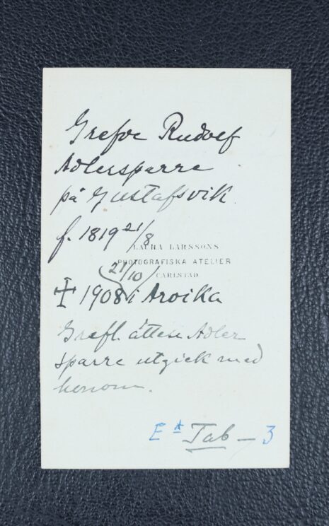 Adlersparre, RUDOLF, greve Adlersparre. Född 1819-08-21. Död 1908-10-21.