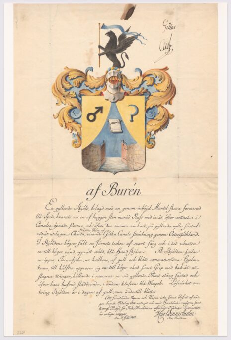 Approberad vapenritning för adliga ätten af Burén, nr 2231.