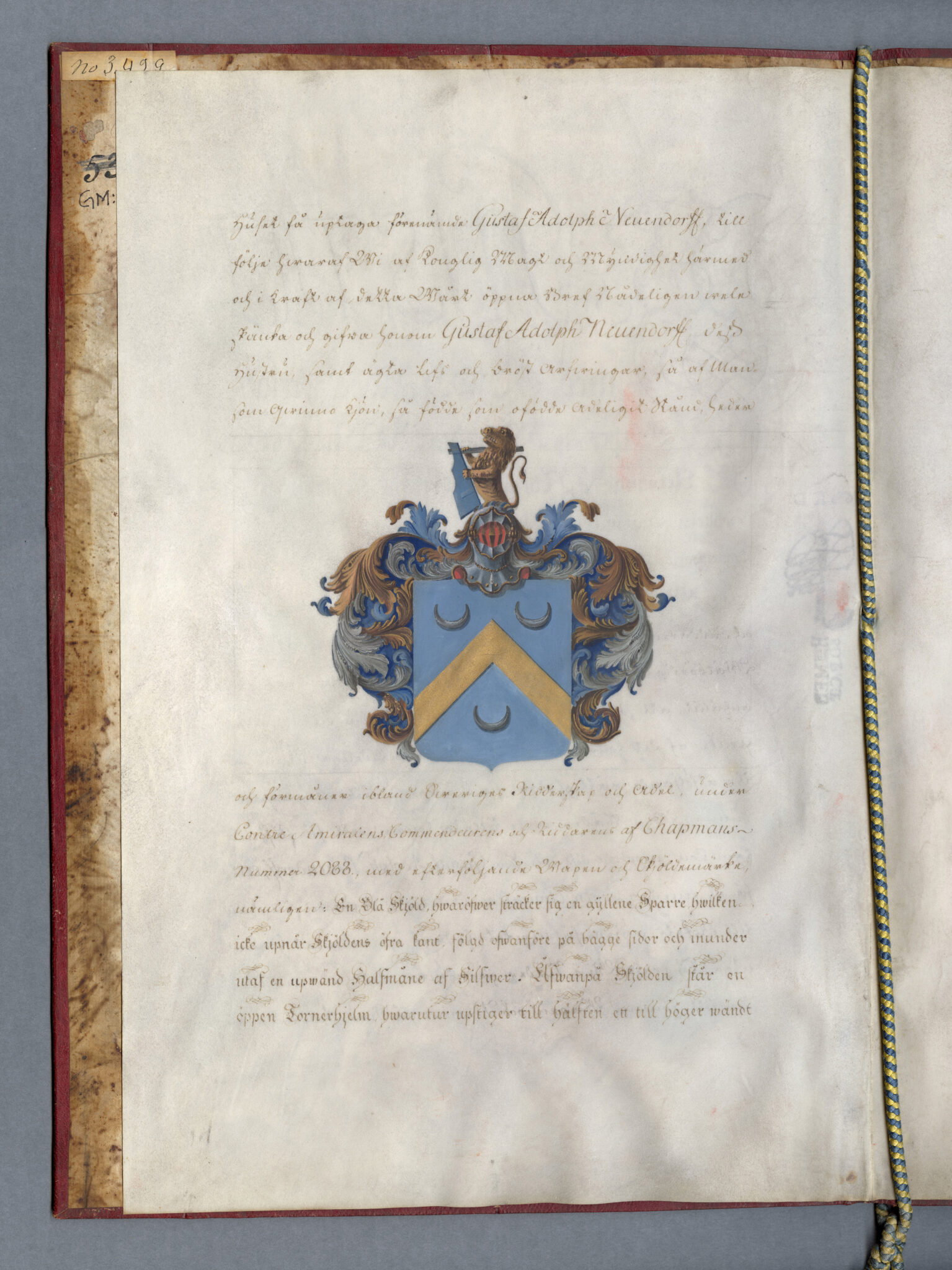 Adoptionsbrevet i original för utdöda adliga ätten af Chapman, nr 2088.