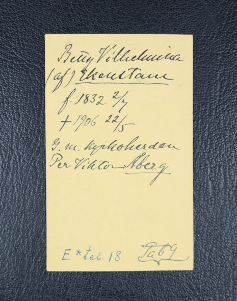 Ekenstam, af, BETTY Vilhelmina, gift Åberg. Född 1832-07-02. Död 1906-05-22.