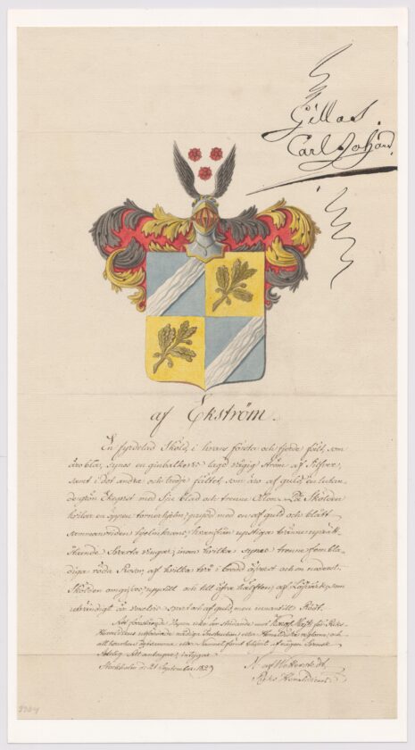 Approberad vapenritning för adliga ätten af Ekström, nr 2304.