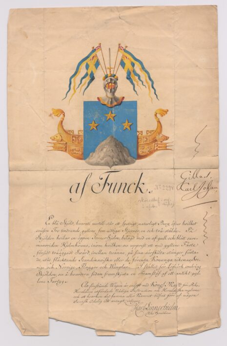 Approberad vapenritning för utdöda adliga ätten af Funck, nr 2294.