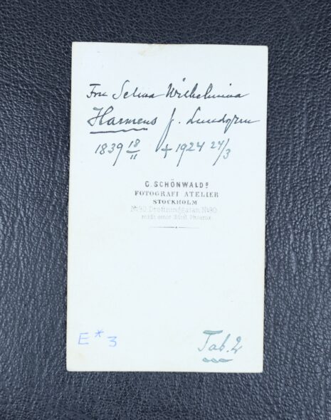 Harmens, af, SELMA Vilhelmina, född Lundgren. Född 1839-11-18. Död 1924-03-24.