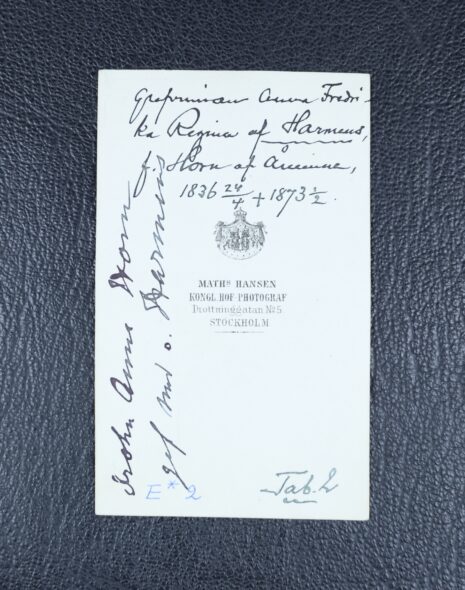 Harmens, af, ANNA Fredrika, född grevinna Horn af Åminne, nr 92. Född 1836-04-24. Död 1873-02-01.
