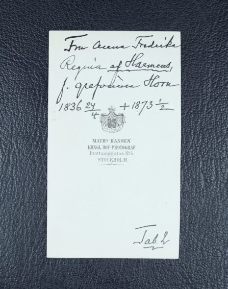 Harmens, af, ANNA Fredrika, född grevinna Horn af Åminne, nr 92. Född 1836-04-24. Död 1873-02-01.