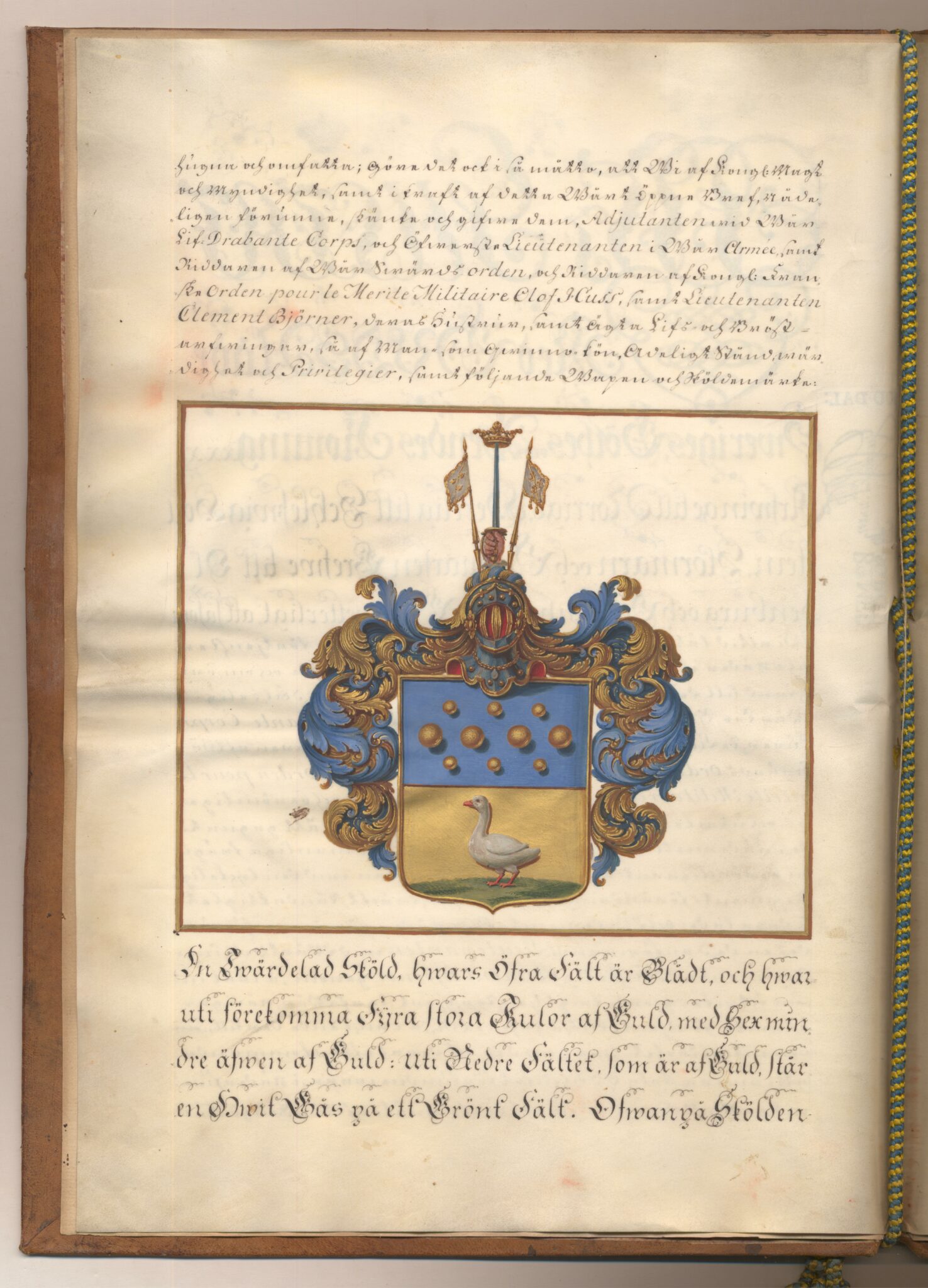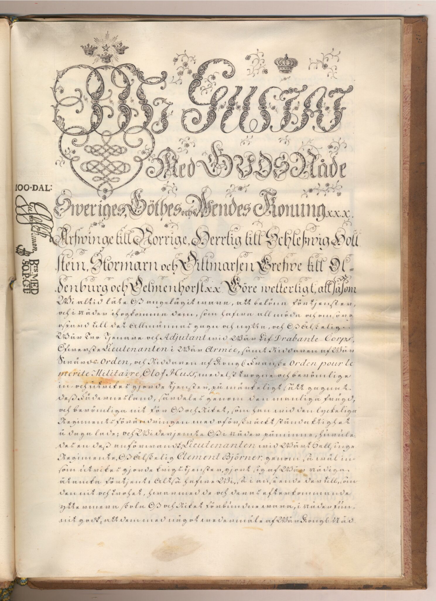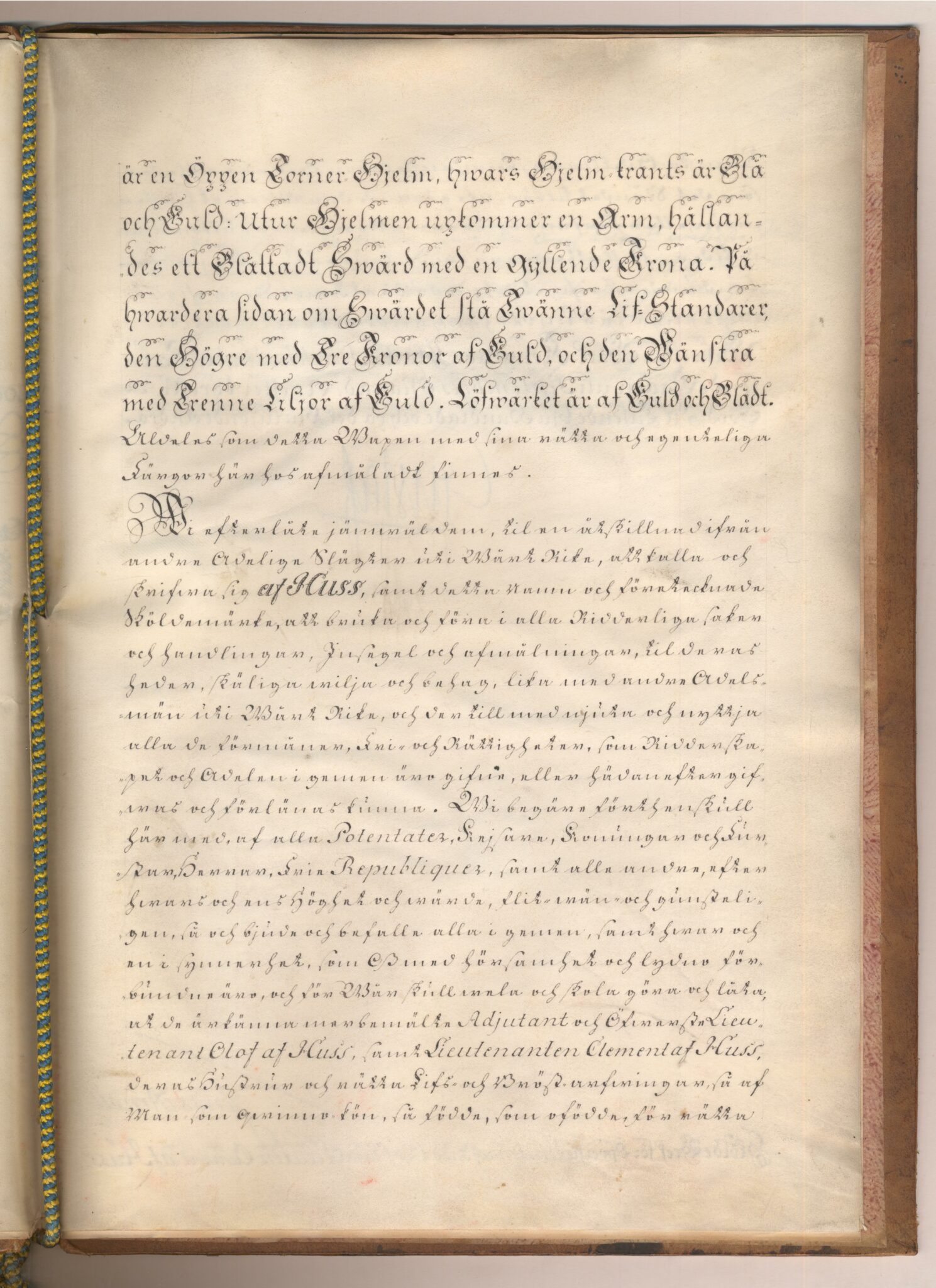Sköldebrevet i original för utdöda adliga ätten af Huss, nr 2075.