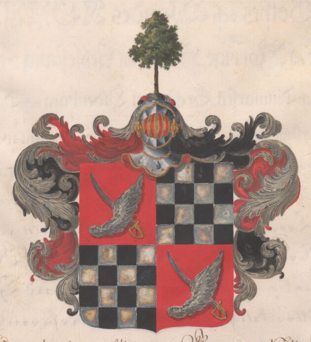 Sköldebrevet i original för adliga ätten af Klercker, nr 2132 B.
