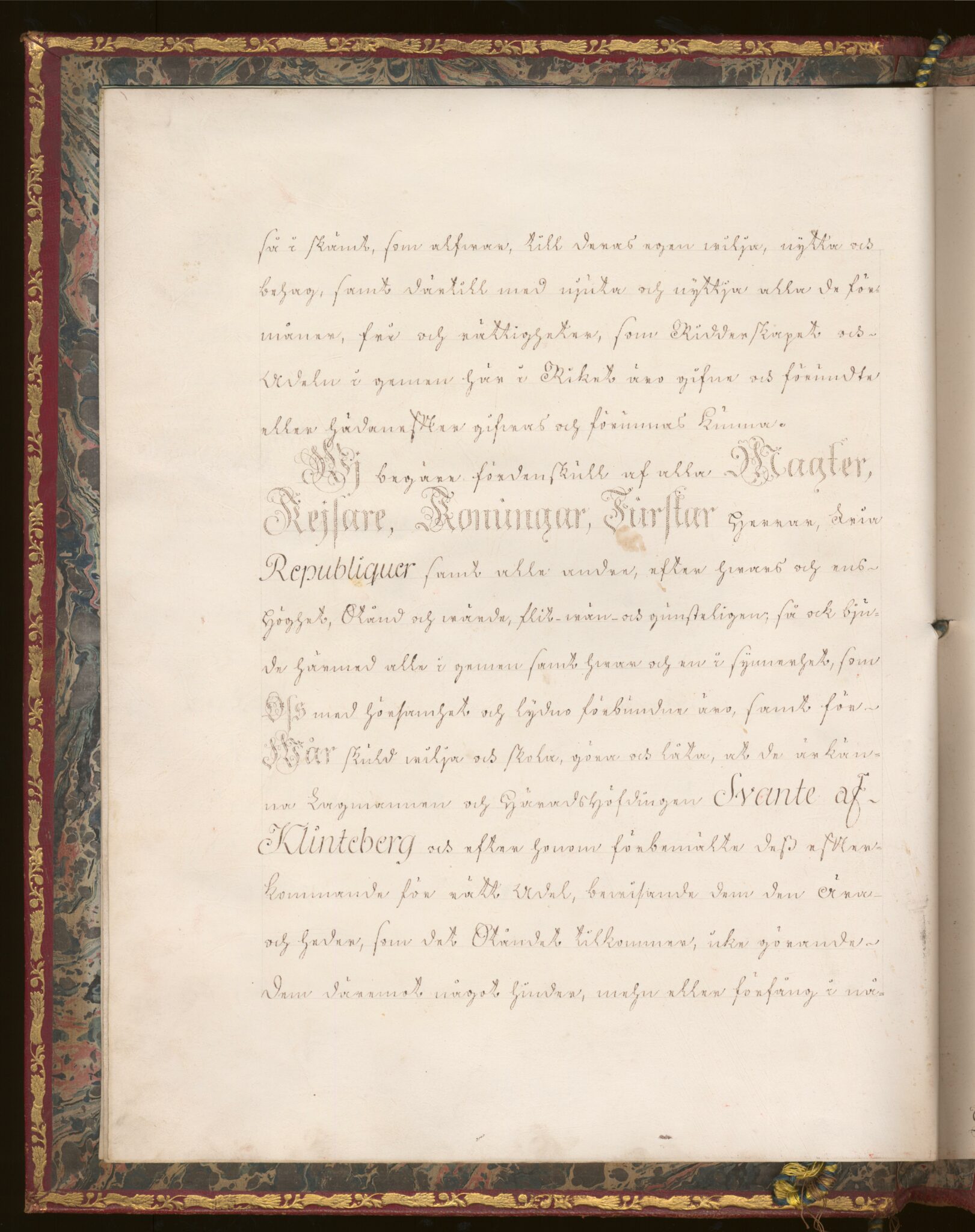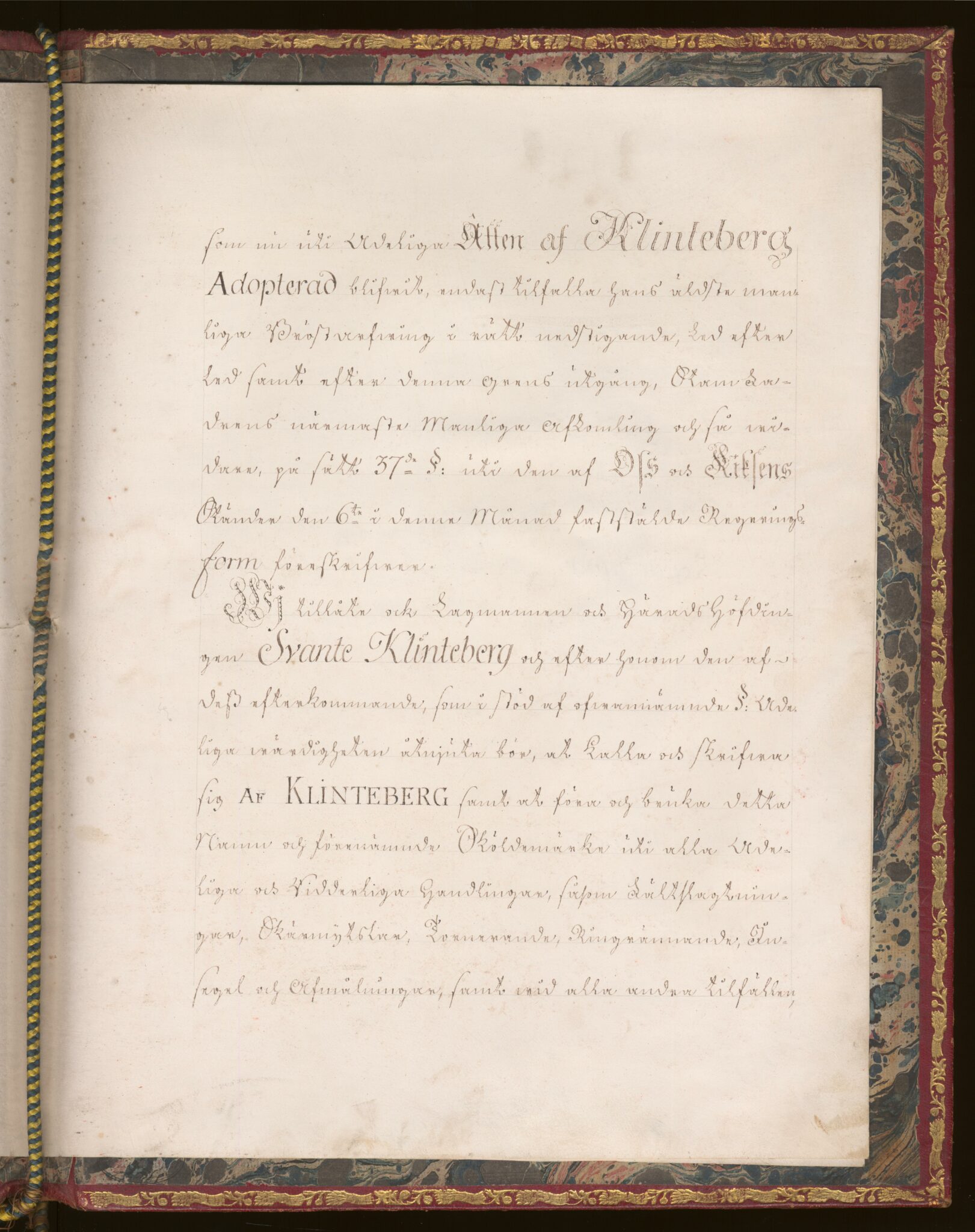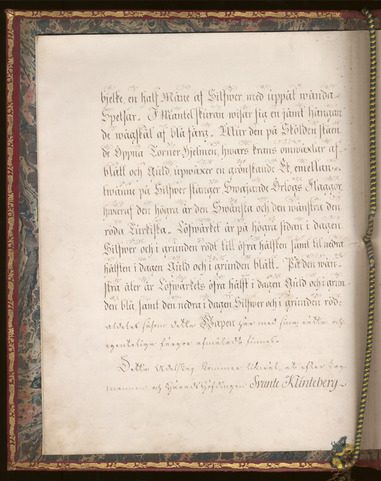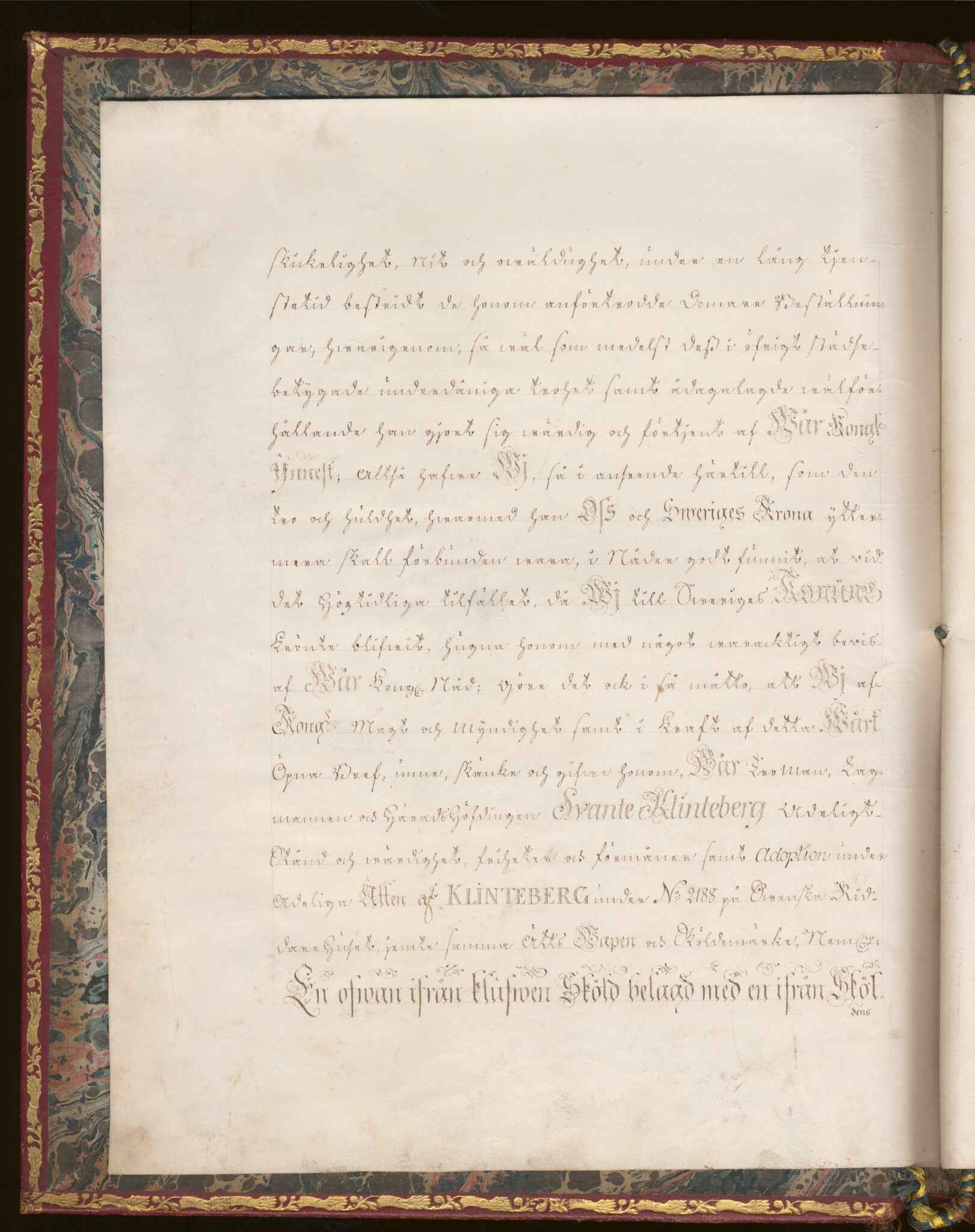 Sköldebrevet i original för adliga ätten af Klinteberg, nr 2188.
