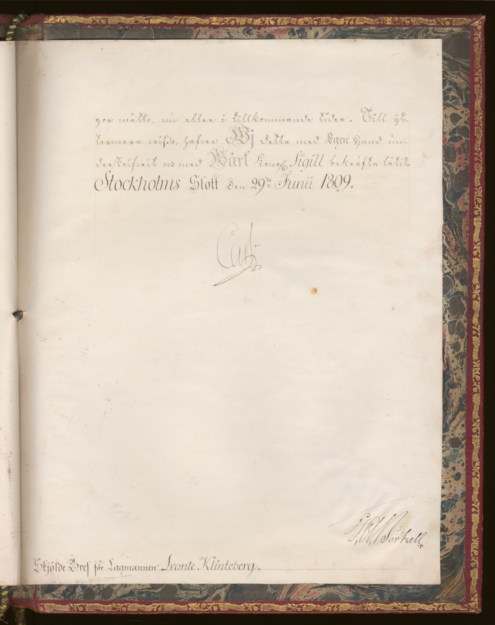 Utnämnd och utfärdat: Karl XIII, Stockholms slott, 1809-06-29.